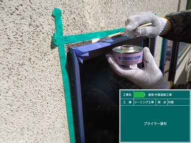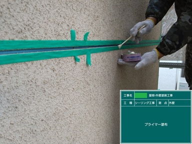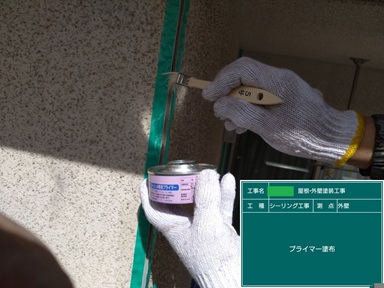 プライマー塗布した個所は、その日のうちにシーリング充填していますが