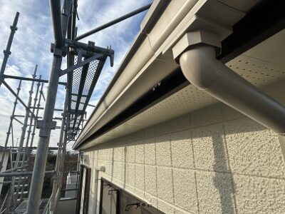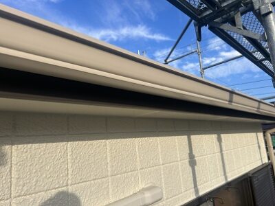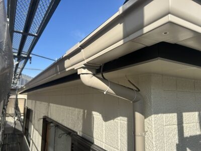 屋根カバー工法が完了しましたので雨樋交換、木破風板(鼻先)板金カバーになります。