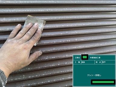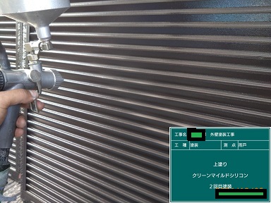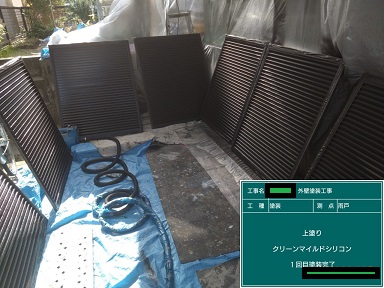 雨戸の吹付塗装です。腰窓は置き塗り、掃き出し窓は取り付けたまま塗装しました!